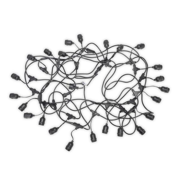 Světelná girlanda s objímkami E27 o délce 15m určená pro venkovní použití. Tento světelný řetěz má 24 samostatných objímek E27 s gumovou izolací, díky které jsou objímky chráněny před vniknutím vody. Tuto girlandu je možné vzájemně propojovat, lze tak vytvořit až 200m dlouhý světelný řetěz s maximálním příkonem 720W. Do jedné objímky lze montovat žárovku s maximálním příkonem 30W.